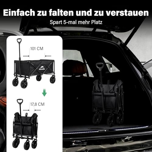 Großzügige Kapazität von 100KG: Abmessungen ausgeklappt: 100×50×100 cm. Qua einer geräumigen Kapazität von 220 BL bietet unser zusammenklappbarer Wagen ausreichend Platz Zugunsten Ihre Habseligkeiten, Lebensmittel, Campingausrüstung und mehr. Er ist eine vielseitige Ablösung Zugunsten den Transport von Gegenständen unterschiedlicher Größe .