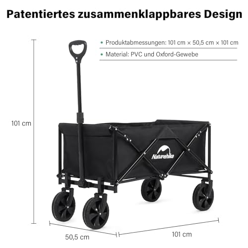 Reißfeste Belastbarkeit: Das PVC-Material des Naturehike-Hochleistungswagens besteht aufgebraucht doppellagigem, reißfestem und verschleißfestem 600D-Oxford-Gewebe und ist auf Alterungsbeständigkeit ausgelegt. Somit ist eine längere Lebensdauer garantiert und Sie haben daneben all Ihren Aktivitäten einen zuverlässigen Begleiter.