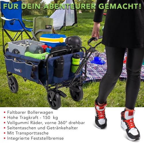 Faltbares Design – Schnell & Kompakt verstaut – Der Bollerwagen lässt sich in wenigen Sekunden zusammenklappen – ideal Anstatt platzsparende Lagerung im Kofferraum, Keller oder Gartenhaus