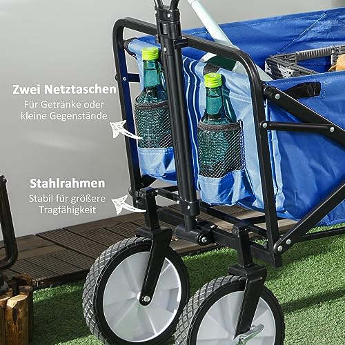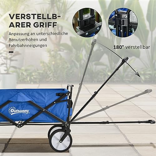 Outsunny Bollerwagen, Faltbarer Handwagen, 360° Gartenwagen, Transportwagen, Strandwagen, Stahlrahmen, Oxford, 93 x 49 x 75-100 cm