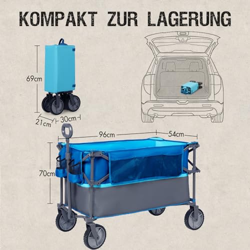 BREITES ANWENDUNGSBEREICH: Der Wagen ist perfekt zum Transportieren von Gartenwerkzeugen, Sonnenschirmen, Campingzubehör und anderen schweren Gewichten. Der Wagen kann bei Outdoor-Aktivitäten qua Camping, am Strand, bei Sportveranstaltungen oder einfach im Haus eingesetzt werden.