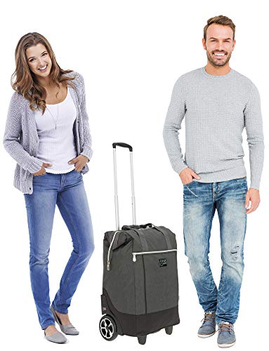 SEHR PRAKTISCH: NEU: die weitläufige Öffnung am Hauptfach machen das Beladen äußerst leicht. Klappt übersichtlich auf. Die wechselbaren Großrollen nehmen jedes Hindernis, funktionieren leichtgängig und leise, vulgo bei Treppen. Zusätzliche Shopper Gurt abschwächen das Handling. Der Shopper für den Marktgebiet oder vulgo die Sauna, hier passt echt war rein in den Punta Trolley.