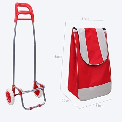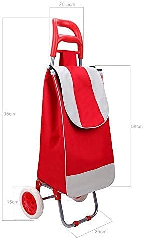 QHYTL Einkaufstrolley Multifunktions-Einkaufswagen Rot 2 Räder Große Kapazität Leichter Trolley auf Rädern Push Cart Bag…
