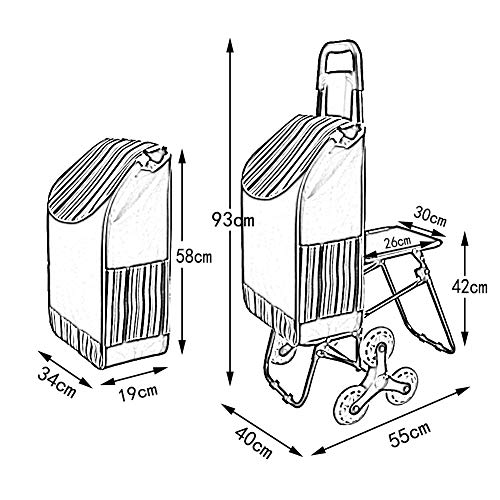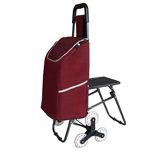 QIANGDA-Handwagen Einkaufstrolley Faltbar Einkaufswagen Älterer Einkaufswagen Mit Sitz Und Radlager Stumm Treppensteiger Belastbarkeit, 5 Farben (Farbe : C)
