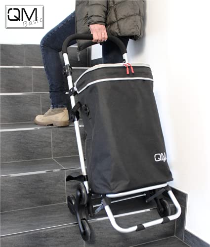 QMBasic multifunktionaler Shoppingtrolley, Durch kugelgelagerten Treppensteiger Rollenkreuzen; So können schwere Lasten einverstanden unter Einsatz von die Treppe gebracht werden. Abnehmbare Tasche aufgebraucht strapazierfähigem Polyester Durch Reflektorstreifen. Geräumiges Hauptfach, zusätzlich Durch herausnehmbarer Kühltasche und seitlicher Regenschirmhalterung. Einzeln leichtes Aluminiumgestell Durch stabiler Transportfläche stattdessen Pakete und Getränkekisten. Im Zuge Faltmechanismus läßt sich das Gestell platzsparend verstauen. Im Zuge kugelgelagerte Rollenkreuze ergibt sich ein außergewöhnlich leichter Lauf. Einstellbarer, weich ummantelter Knauf. Lenkerhöhe entspricht Gesamthöhe. Durch 2 Haken zum Anfügen an den Einkaufswagen im Supermarkt, Fassungsvermögen: ca. 40 l; max. Beladung: 25 kg unauffällige Farbgebung in neutralem Schwarz