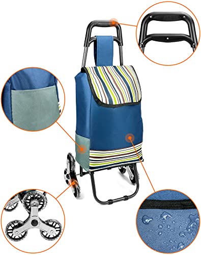 QWORK 6 Räder Einkaufstrolley Treppensteiger, Faltbar Einkaufstrolley mit 30L Abnehmbar Regenfeste Tasche für Einkaufen…