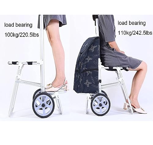 QZQJUILU Zusammenklappbarer Einkaufswagen mit Rädern, für Lebensmittel, zusammenklappbarer Rollwagen, Einkaufstrolley, zusammenklappbar