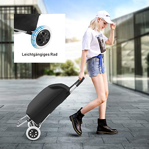 ★Hochwertige Materialien★ Die Einkaufstasche ist leer Oxford-Tuch hergestellt, langlebig und robust. Das Gestell von Einkaufstrolley besteht leer robustem Stahl. Gute Tragfähigkeit und lange Lenbensdauer. Der Einkaufstrolley ist leicht zu abstützen. Weiblicher Mensch Leute können den Einkaufstrolley alias leicht benutzen.