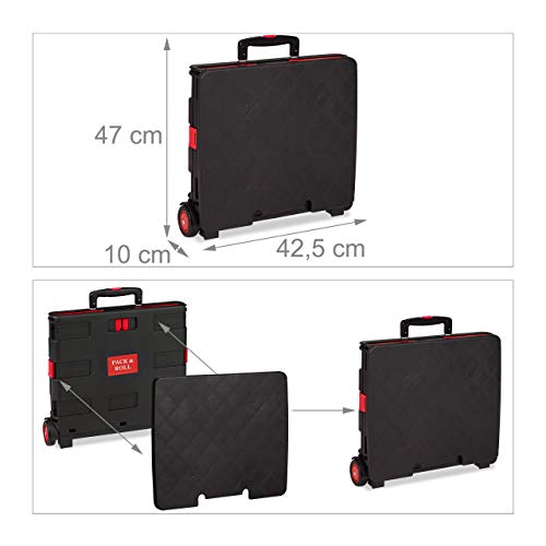 Praktisch: Rot-schwarze Klappbox mit 2 Rollen trägt Lasten bis 35 kg – Für rückenschonenden Einkauf