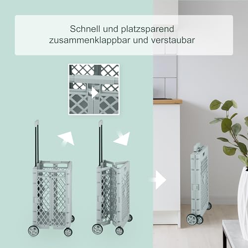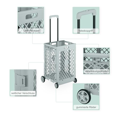 Komfortabel: Einkaufskorb mit 4 Rollen und Teleskopgriff zum Ziehen – Rückenschonender Transport