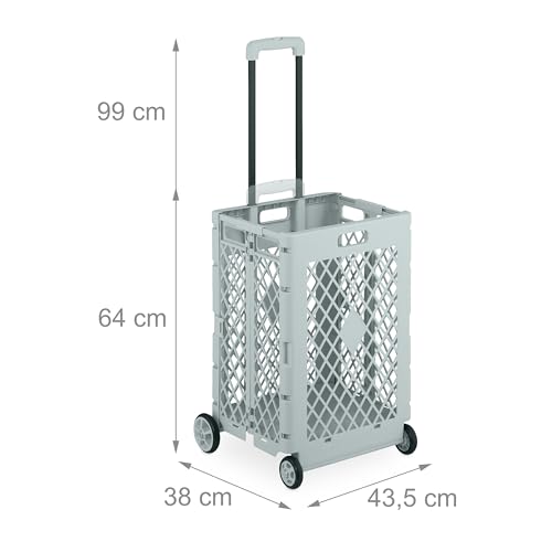 Relaxdays Einkaufstrolley klappbar, Einkaufskorb mit Rollen, bis 25 kg, Teleskopgriff, Gitter, hohe Rollkiste, grau