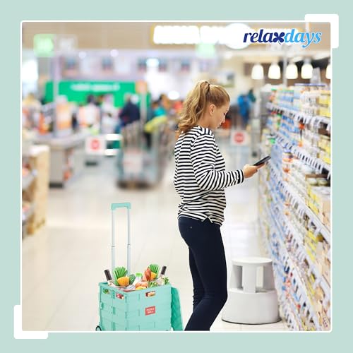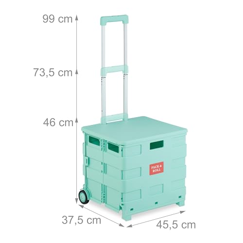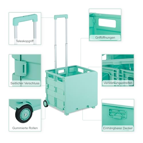 Relaxdays Einkaufstrolley, klappbar, Einkaufskorb mit Rollen, mit Deckel & Teleskopgriff, bis 35 kg, Rollkiste, türkis