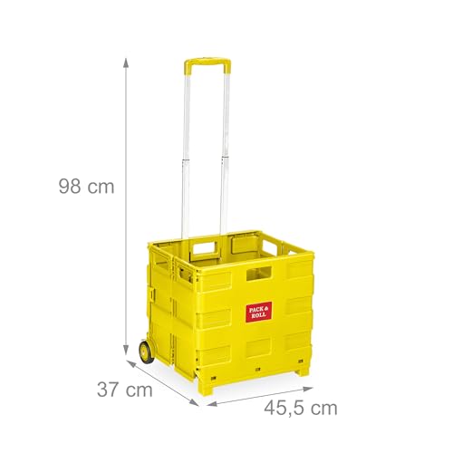 Relaxdays Einkaufstrolley, Klapptrolley mit Rollen & Teleskopgriff, bis 35 kg, Faltbare Einkaufshilfe, Rolltrolley, gelb