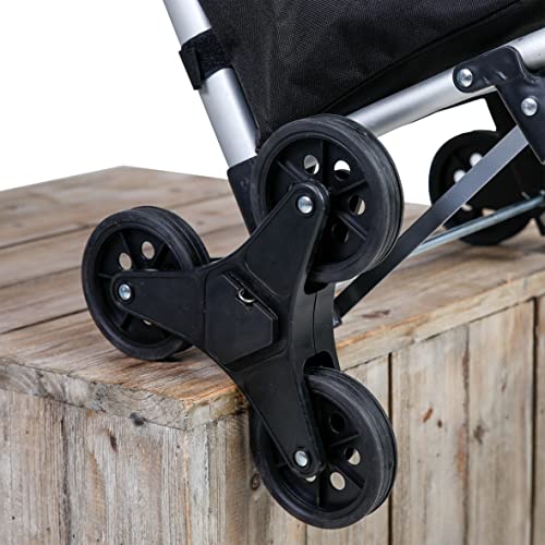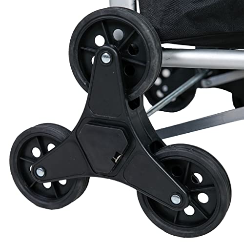 Einfach rollen zugunsten schwer abschleppen! Treppen, Bordsteine, unebene Wege –dein neuer Einkaufswagen meistert aufgebraucht diese Herausforderungen mit Bravour. Das funktionelle 3+3-Radsystem macht es ungewiss. An dieser Stelle passt was rein: Einkäufe, leere Flaschen, Hundespielzeug und vieles mehr. Der Trolley ist mit einer ca. 45 Liter fassenden, großzügigen Tasche mit Zugband ausgestattet. Sie verfügt über eine rückseitige Reißverschlusstasche und kann mithilfe von Klettverschlüssen befestigt oder abgenommen werden. Auswahlmöglichkeit Vorteile: griffiger Henkel, leichtes Leichtmetall-Gestell, platzsparende Klappfunktion. Kurzum – mit dem Rollwagen bist du bestens beraten, wenn du flexibel und anpassungsfähig sein willst. Ein echtes Platzwunder –funktionell und stilvoll.