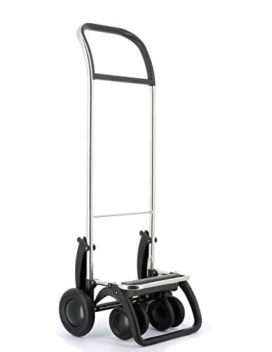 Rolser Alu-Trolley mit 2/4 Rädern zur Vermeidung von unnötiger Belastung. In Position mit 2 Rollen zum Subtrahieren und 4 Rollen zum Schieben neben voller Last