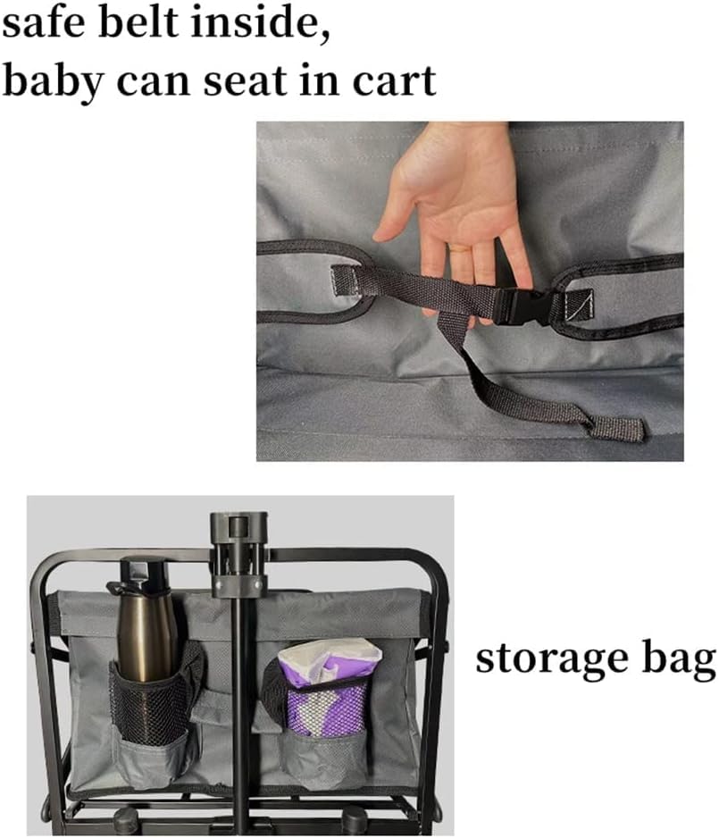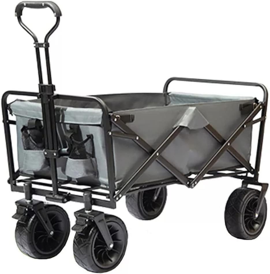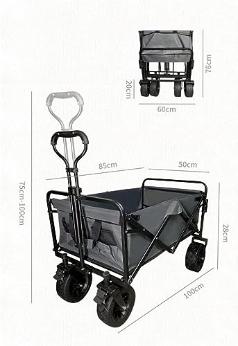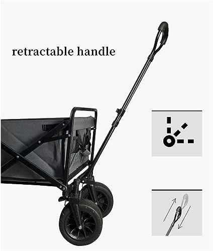 RUHEN Handwagen, tragbarer Einkaufstrolley für den Hausgebrauch, zusammenklappbarer Gartenwagen, robuster Trolley, Outdoor-Camping-Picknickwagen, verstellbare, einziehbare Schub-/Zugstange, leicht zu