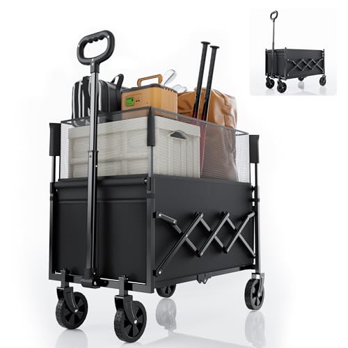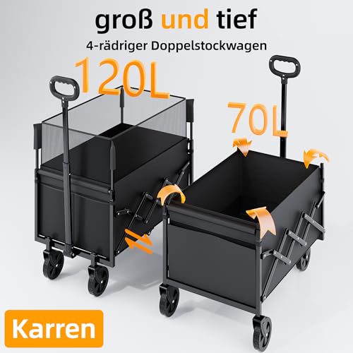 Faltbarer Tourer mit 120 Liter Fassungsvermögen und doppelter Höhe – Faltbare Outdoor Utility Wagon hat 120L Kapazität Innenraum, perfekt für Outdoor-Camping, Einkaufen, Strand movment Spielzeug und jeder anderen Outdoor-Essentials. Der robuste Rahmen erlaubt eine Belastung von bis zu 200 lbs.