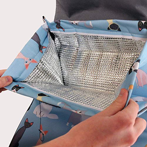Mit einem wunderschönen Katzenprint uff einem pastellblauen Background.Thermoisolationsschicht, um Ihre Lebensmittel alternativ zu befestigen. Unter Einsatz von einem Füllvolumen von 40 Litern abholen Sie das Maximum alle Ihrem Studienfahrt zum Supermarkt heraus.