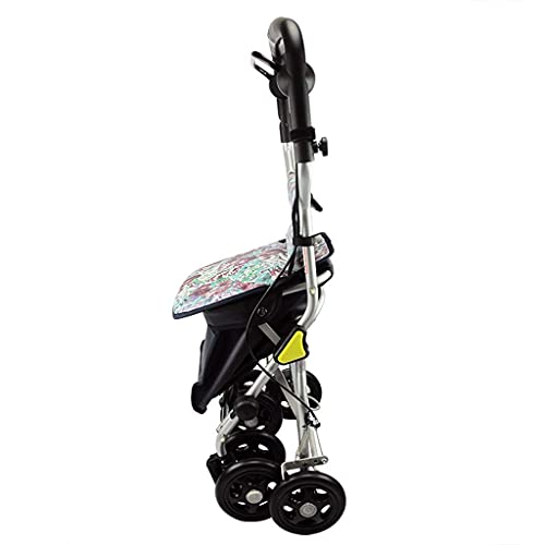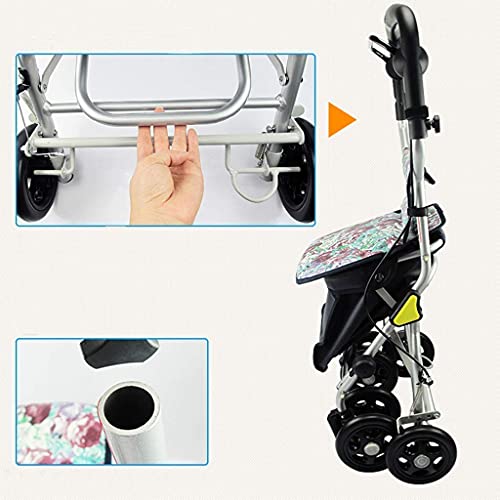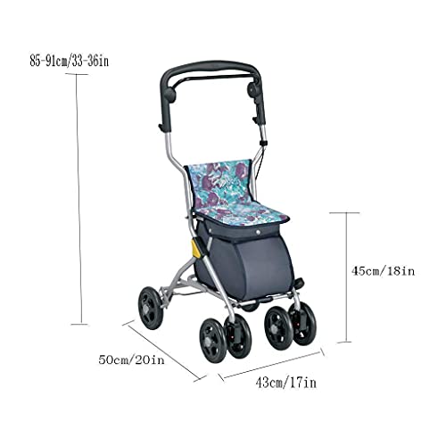 SDGF-YTR ly Faltbarer vierrädriger Rollator Einkaufstrolley aus Aluminium Höhenverstellbare Gehhilfe Sitz mit Rückenlehne Einkaufskorb Handbremse Outdoor