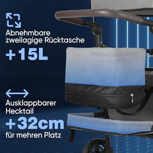 【𝐁𝐨𝐥𝐥𝐞𝐫𝐰𝐚𝐠𝐞𝐧 𝐦𝐢𝐭 𝐃𝐚𝐜𝐡 𝐟ü𝐫 𝟐 𝐊𝐢𝐧𝐝𝐞𝐫】: Der Bollerwagen ist mit 𝐳𝐰𝐞𝐢 𝐒𝐞𝐭𝐬 𝟑-𝐏𝐮𝐧𝐤𝐭-𝐒𝐢𝐜𝐡𝐞𝐫𝐡𝐞𝐢𝐭𝐬𝐠𝐮𝐫𝐭𝐞𝐧 ausgestattet, um gleichzeitig die Sicherheit von zwei Kindern zu gewährleisten. Das 𝐇𝐞𝐜𝐤 𝐤𝐚𝐧𝐧 𝐩𝐫𝐨𝐛𝐥𝐞𝐦𝐥𝐨𝐬 𝐚𝐮𝐬𝐠𝐞𝐤𝐥𝐚𝐩𝐩𝐭 werden, um den Platz für die Beine Ihrer Kinder zu vergrößern.
