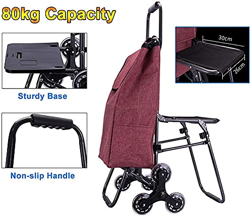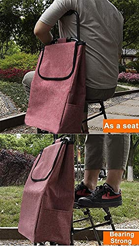 SENWEI Multifunktions-Einkaufstrolley, zusammenklappbar, mit Sitz, 6 Rädern, für Lebensmittel, Treppe, Klettern…