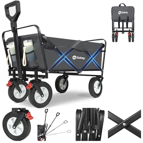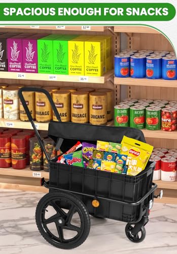 SEPNINE 2in1 Einkaufstrolley mit 86L Kapazität, Handwagen mit Schiebebügel, bis 40kg belastbar, Trolley & Sackkarre mit 40 cm Luftreifen, Fahrrad Lastenanhänger, Schwarz