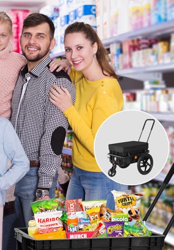 【Vielseitige Verwendung】Dieser Einkaufstrolley kann sowohl Wie geräumiger Handwagen Wie alias Wie praktischer Fahrrad Lastenanhänger genutzt werden. Schnuppe, ob Sie Ihre schweren Einkäufe bequem im Supermarkt schieben und nach Hause bringen oder den Wagen direkt an Ihr Fahrrad anschließen möchten, um die Last zu transportieren – dieses Produkt bietet Ihnen die perfekte Abtrennung. Nutzen Sie ihn für müheloses Einkaufen, Reisen, Camping oder den Transport von Erde, Pflanzen, Blumentöpfen, Werkzeugen und mehr