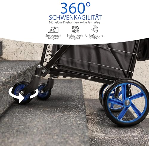 SereneLife Einkaufstrolley Klappbar & Treppensteiger, Einkaufswagen- aus Metall, Shopping Trolley- 50Kg mit Schwenkbare Räder, Hackenporsche, Robuste Sackkarre, Shopping Cart- mit Abnehmbarem Liner