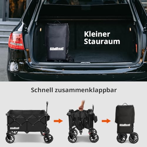 SLIDBEAT XXL Bollerwagen Faltbarer mit Große Räder All Terrain 330L 150KG Faltbar Bollerwagen Klappbar aus Vier Richtungen Bollerwagen Für Strand Garten Camping Shopping