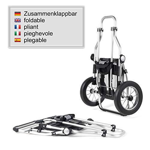 Hochwertig: Trolley Gestell aus Aluminium bis 50 kg belastbar | leicht laufende, leise Räder mit 25 cm Durchmesser | Shopper Tasche wasserabweisend
