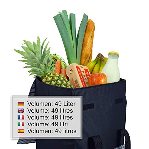 Hochwertig: Trolley Gestell aus Stahl bis 60 kg belastbar | leicht laufende Räder mit 25 cm Durchmesser | Shopper Tasche wasserabweisend