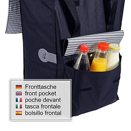 Praktisch: mit dem ausgekappten Bügel spielend Getränkekisten transportieren | geräumige Falttasche mit 49 Liter Volumen | Hinweis: das Stahlgestell der Royalserie besitzt NICHT wie das Alugestell den Hängfix für den Einkaufswagen