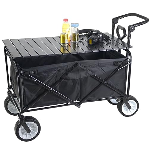 Strandwagen Bollerwagen Klappbarer Mehrzweckwagen Für Den Außenbereich, Zusammenklappbarer Wagenwagen, Mehrzweck-Gartenwagen Mit Tisch-Campingwagen Auf Rädern Handwagen Campingwagen ( Color : Black )