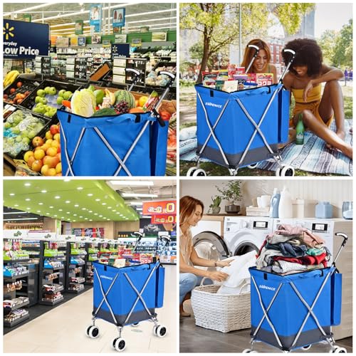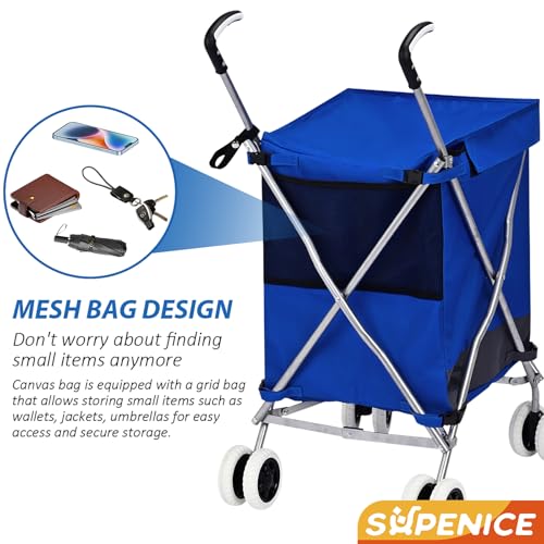 Supenice Einkaufswagen für Lebensmittel, faltbarer Rollwagen mit 360°-Doppel-Schwenkrädern vorne, wasserdicht, herausnehmbarer Canvas-Einsatz mit Abdeckung für Wäsche, Lebensmittel, Gepäck, Picknick