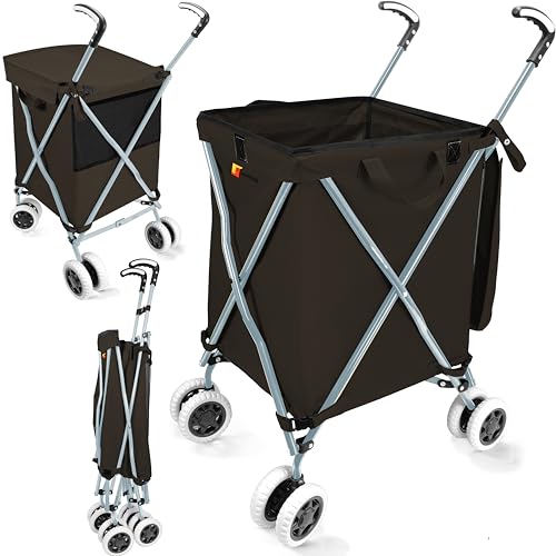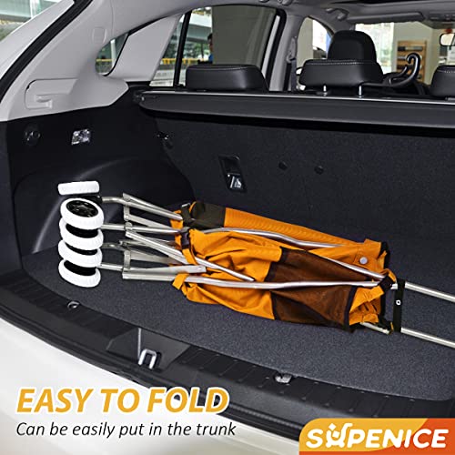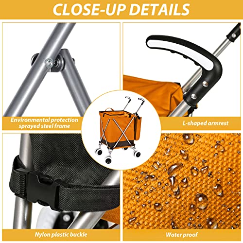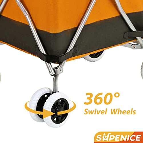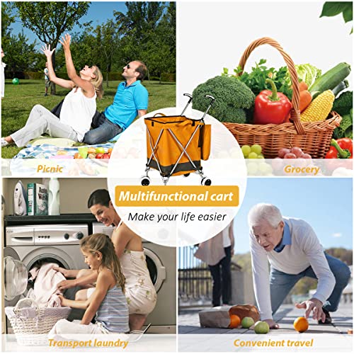 Supenice Zusammenklappbarer Einkaufswagen mit 360 ° Doppel-Schwenkrädern, wasserdicht, abnehmbare Canvas-Tasche mit Abdeckung für Wäsche, Einkäufe, Gepäck, Picknick (Orange)