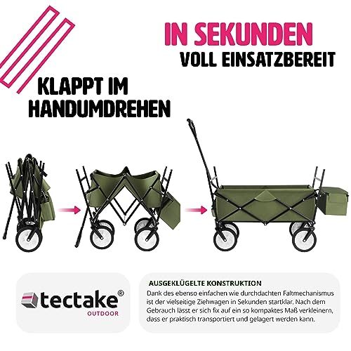 SCHNELL UND EINFACH ZUSAMMENGEKLAPPT: Du wirst beeindruckt sein, wie schnell der TecTake Bollerwagen zusammenzuklappen ist. Mit seinem faltbaren Design und der zusätzlichen Tragetasche ist er ideal für Transport und Aufbewahrung. Perfekt für den Strand, den Garten, Einkäufe und mehr. Du wirst dich fragen, wie du je ohne ihn ausgekommen bist.