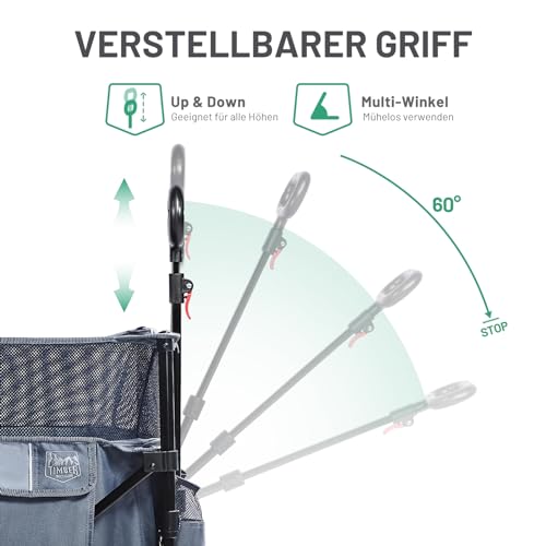 TIMBER RIDGE Bollerwagen Faltbar XXXL 225L Transportwagen Klappbar Einstellbarer Kapazität mit Verstellbarem Griff Seitentasche Getränkehalter Gartenwagen Handwagen Alle Gelände für Garten Camping