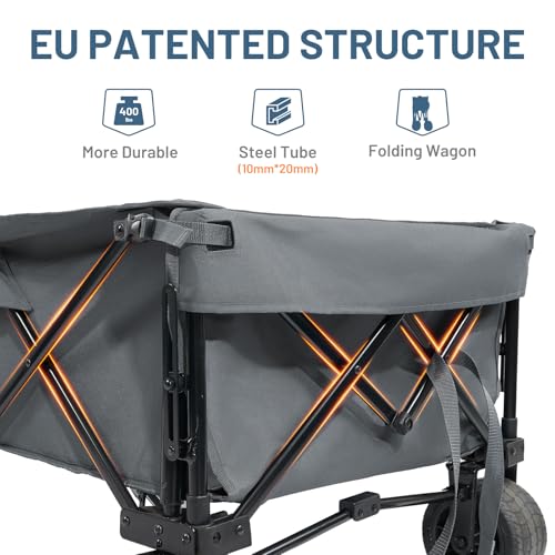 LÄNGER & GERÄUMIG: Dieser faltbare Bollerwagen verfügt über eine klappbare Heckklappe, die perfekt für den Transport von langen Gegenständen, z.B. 3*3m pavillon, und bietet ein Fassungsvermögen von bis zu 600L, 350 % mehr als andere Wagen. 2 Becherhalter und übergroße Seitentaschen für bequeme Aufbewahrung; der Griff des Nutzwagens kann von 56 auf 83cm eingestellt werden, um unterschiedlichen Höhen gerecht zu werden und einen angenehmen Erfahrung zu gewährleisten.