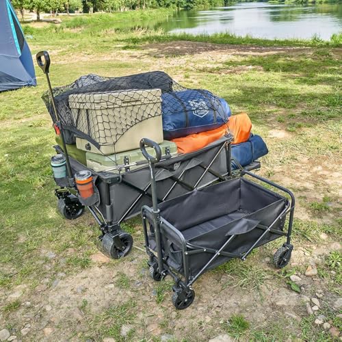 TIMBER RIDGE Bollerwagen Faltbare 600L Extra Langer mit Faltbarer Heckklappe Bremse Strandwagen mit Seitentasche Getränkehalter verstellbarem Griff, Gartenwagen Transportwagen für Alle Gelände