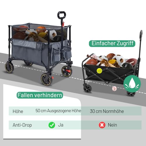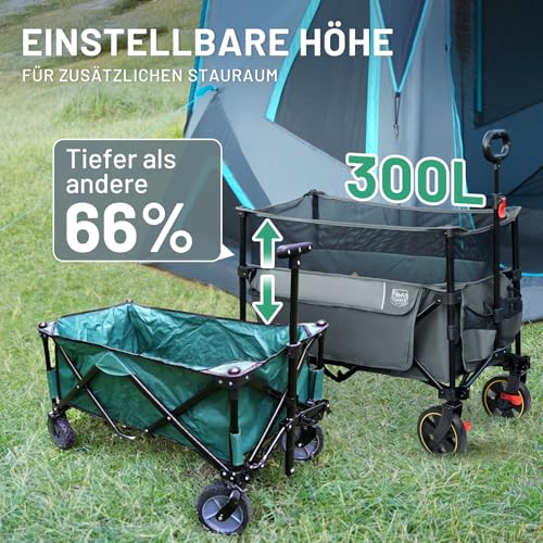 TIMBER RIDGE XXXL Bollerwagen Faltbar 225L mit Bremse Transportwagen Klappbar Einstellbarer Kapazität Verstellbarem Griff Seitentasche Getränkehalter Gartenwagen Handwagen Alle Gelände