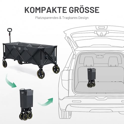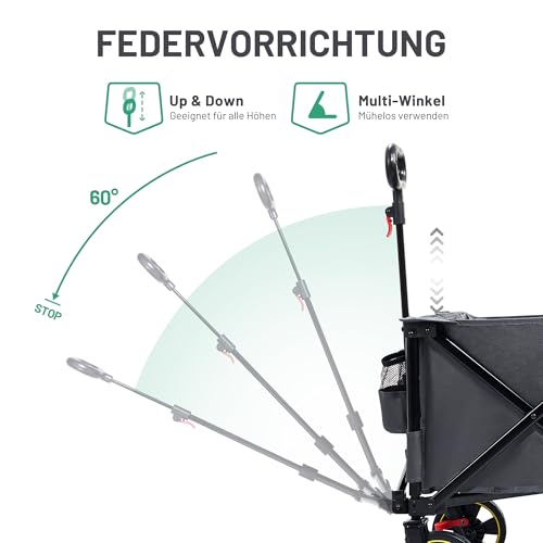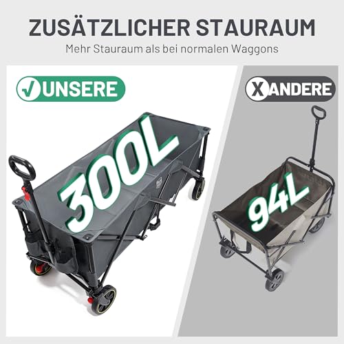 TIMBER RIDGE XXXL Bollerwagen Faltbar 300L 160KG Belastbar mit Netze als Fallschutz Transportwagen mit Bremse Seitentasche Getränkehalter verstellbarem Griff, Gartenwagen Strandwagen für Alle Gelände