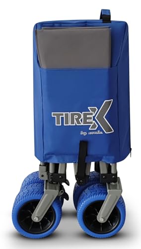 TIREX by xonic® Bollerwagen Vollgummi-PU-Universal-Räder – Robuster Transport-Wagen, faltbar mit Fußbremsen – Hand-Karre mit 2-Fach verstellbarem Griff – Unfold & Go (PU XL Räder, Blau)