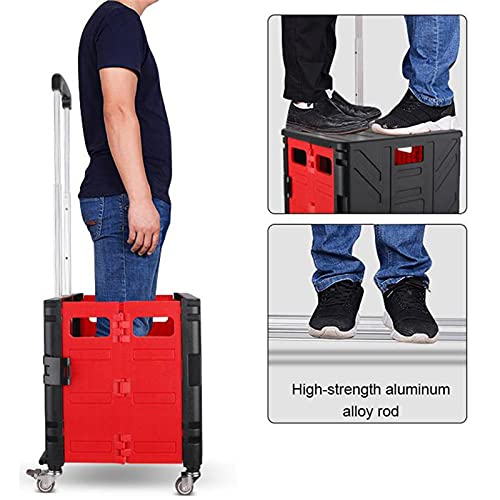 Einkaufswagen von Vielseitig und praktisch: Der zusammenklappbare Einkaufswagen mit Rädern eignet sich nicht gleichwohl für den Transport von Lebensmitteln und Campingausrüstung, Werkzeugen. Es eignet sich bekannt als für Koffer, Mineralwasser, Sportgeräte, Gartenartikel, Strandausrüstung und Küchenbedarf. Dieser Klappwagen kann zum Transportieren, Einkaufen, Reisen, tragbaren Aufbewahren und Einsitzen sowie als Tritthocker verwendet werden.