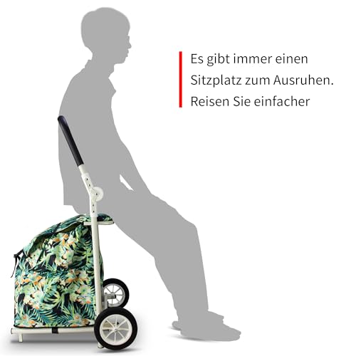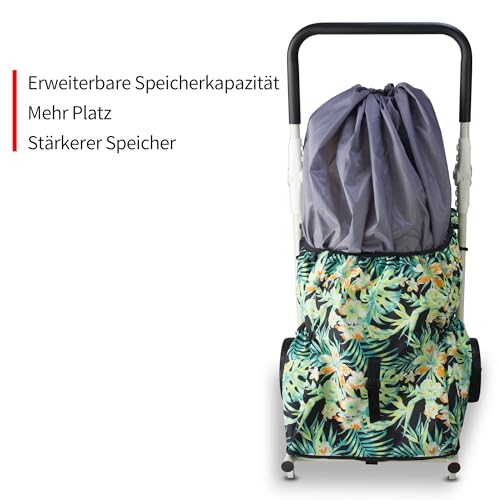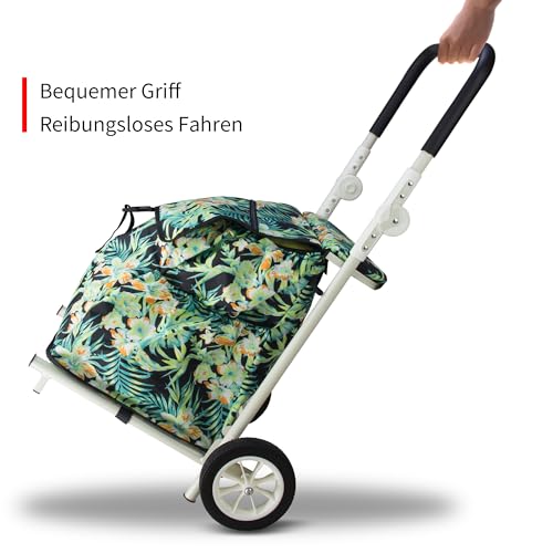 TMZ Einkaufstrolley klappbar mit 120L Kapazität und belastbar bis 50kg| Faltbarer Einkaufswagen Höhenverstellbarer Griff Kann als Stuhl verwendet Werden (Tropischer Stil)