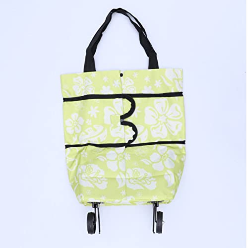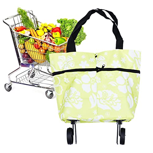 TOPBATHY Faltbare Einkaufstasche mit Rollen, faltbare Einkaufstrolley-Taschen, Einkaufswagen (grüne Blätter), Grüne…