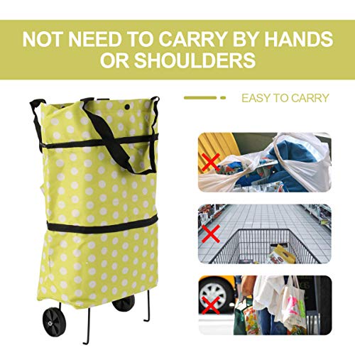 TOPBATHY Faltbare Einkaufstasche mit Rollen, faltbare Einkaufstrolley-Taschen, Einkaufswagen (grüne Punkte), Grüner…