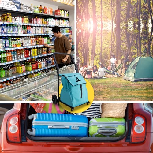 TOPWELL Einkaufstrolley, Klappbarer bis 50kg Einkaufswagen 120L Einkaufstasche Shoppingtrolley Handwagen für Einkaufen oder Transportieren von Waren, Kann als Sitz verwendet Werden. (himmelblau)