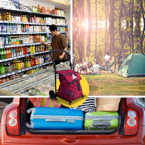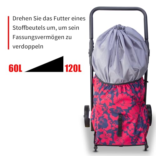 TOPWELL Einkaufstrolley, Klappbarer bis 50kg Einkaufswagen 120L Einkaufstasche Shoppingtrolley Handwagen für Einkaufen oder Transportieren von Waren, Kann als Sitz verwendet Werden. (Rot+Blau)