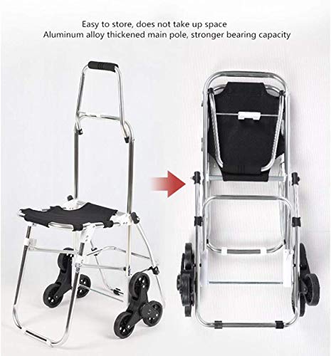 Tragbarer Einkaufstrolley 6 Rad Mit Sitz Klappbare Sackkarre Abnehmbarer Rucksack Aluminiumlegierung Treppentrolley 38L