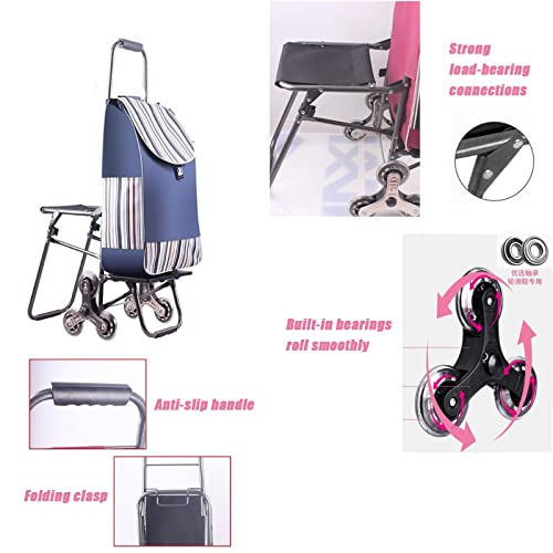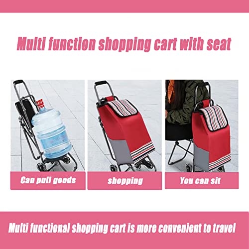 Tragbarer Einkaufstrolley zum Einkaufen, zusammenklappbar, mit Sitz, Outdoor-Reisen, wasserdicht, Oxford-Stoff…
